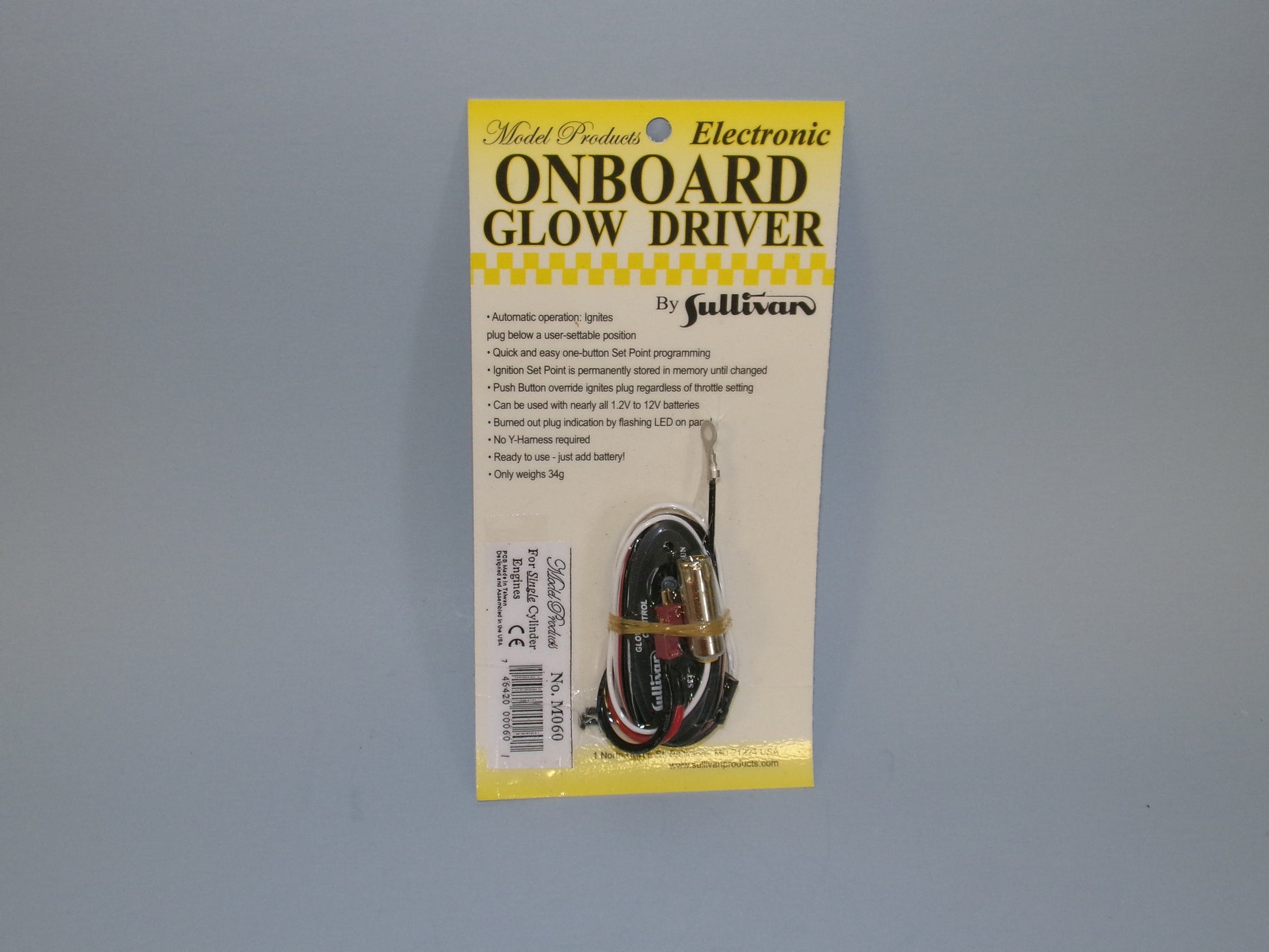 M061- Onboard Glow Driver for twin cylinder engines features on/off button, a button for starting and easy one button set point programming. The set point is locked and stored until you change it. Green LED light to show when glow plug is working properly. Comes with built in Y harness to plug your throttle servo into. Includer our HeadLock and micro-Deans connectors. (You can replace with your favorite heavy-duty plug). Works best with 2 cell LiPo or LiFe batteries but any 1.5 - 12 volt battery will work. Not recommended with NiMH batteries as they can give intermittent results.